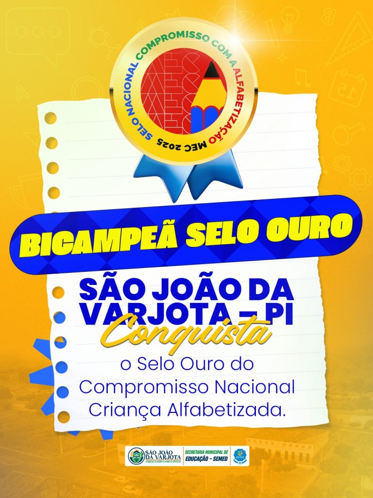 São João da Varjota – PI é BICAMPEÃ do Selo Ouro do Compromisso Nacional Criança Alfabetizada, uma conquista que reafirma o compromisso sério e contínuo com a educação de qualidade.