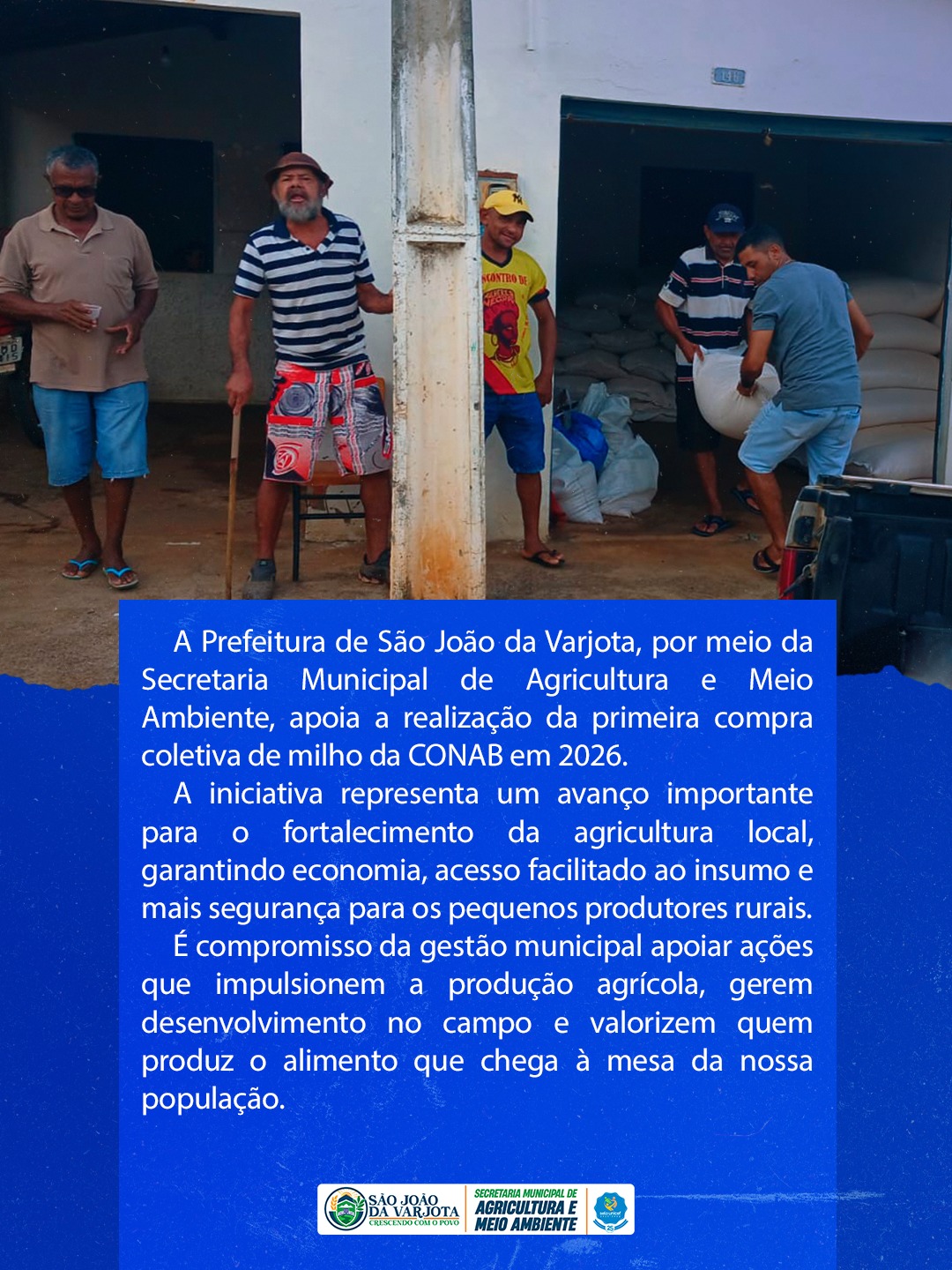 A Prefeitura de São João da Varjota, por meio da Secretaria Municipal de Agricultura e Meio Ambiente, apoia a realização da primeira compra coletiva de milho da CONAB em 2026.