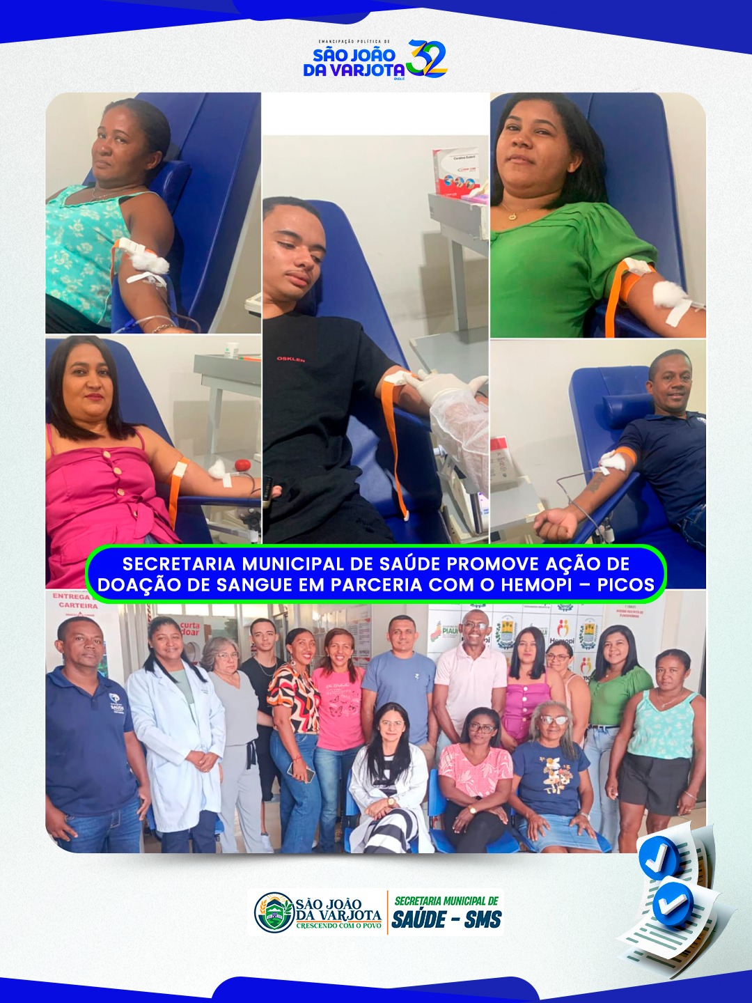 A Secretaria Municipal de Saúde de São João da Varjota realizou mais uma importante ação do Grupo de Doadores de Sangue do município, em parceria com o HEMOPI – Picos.