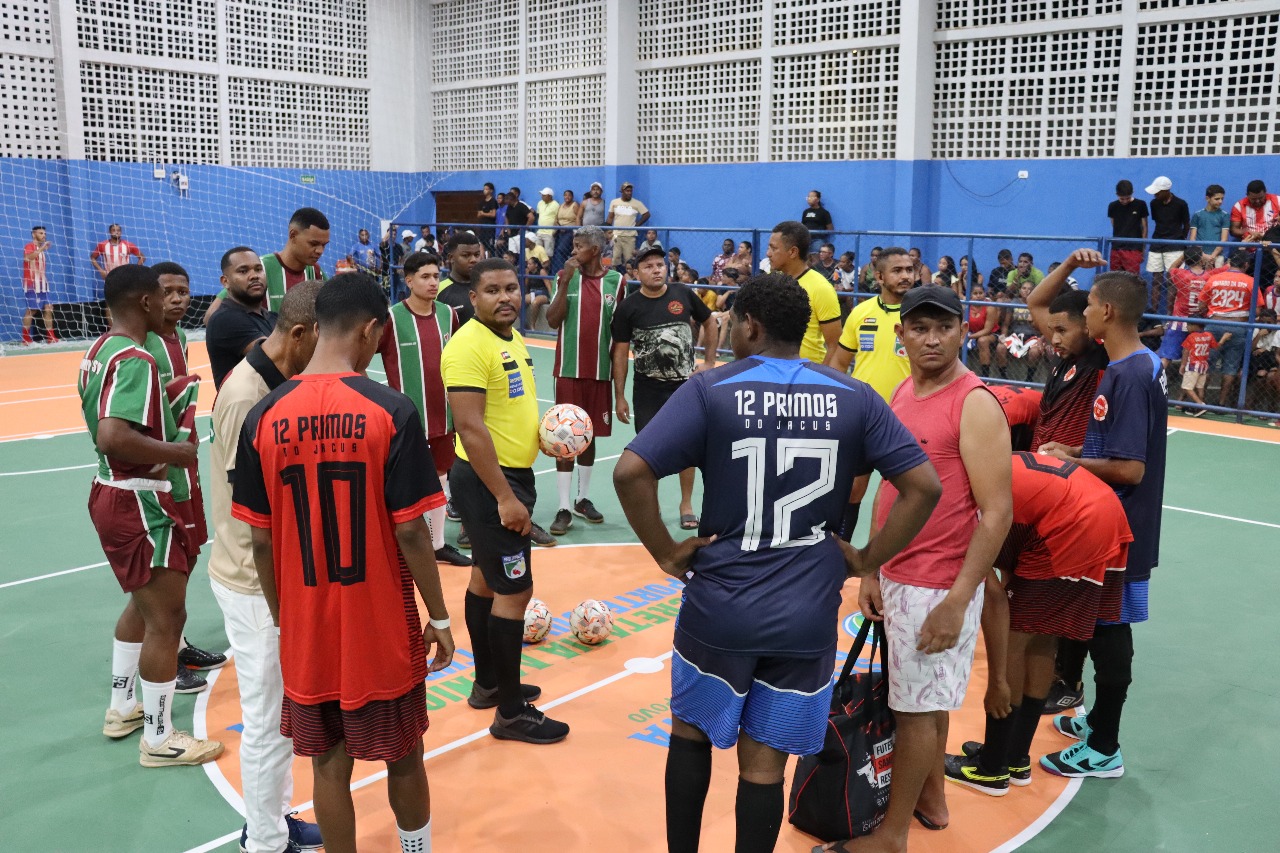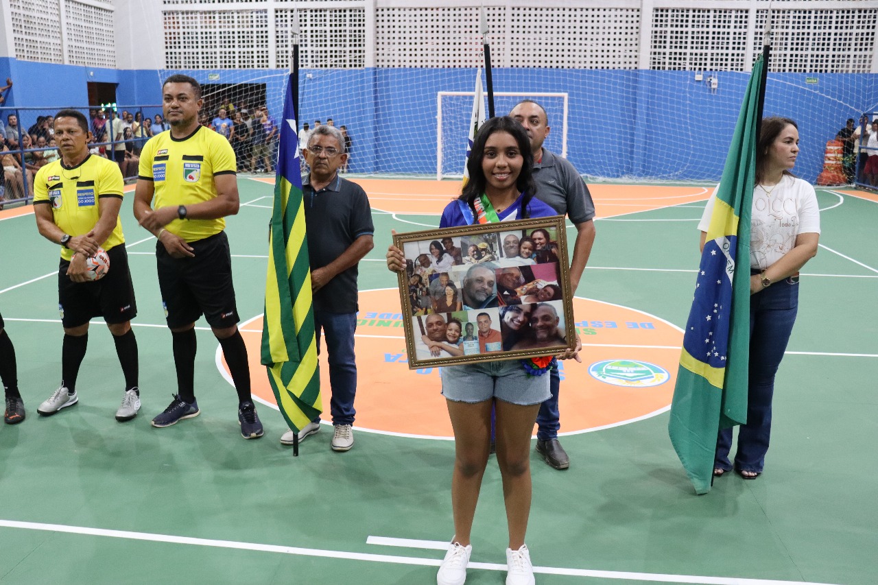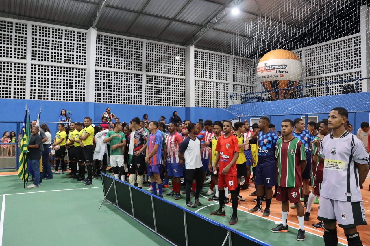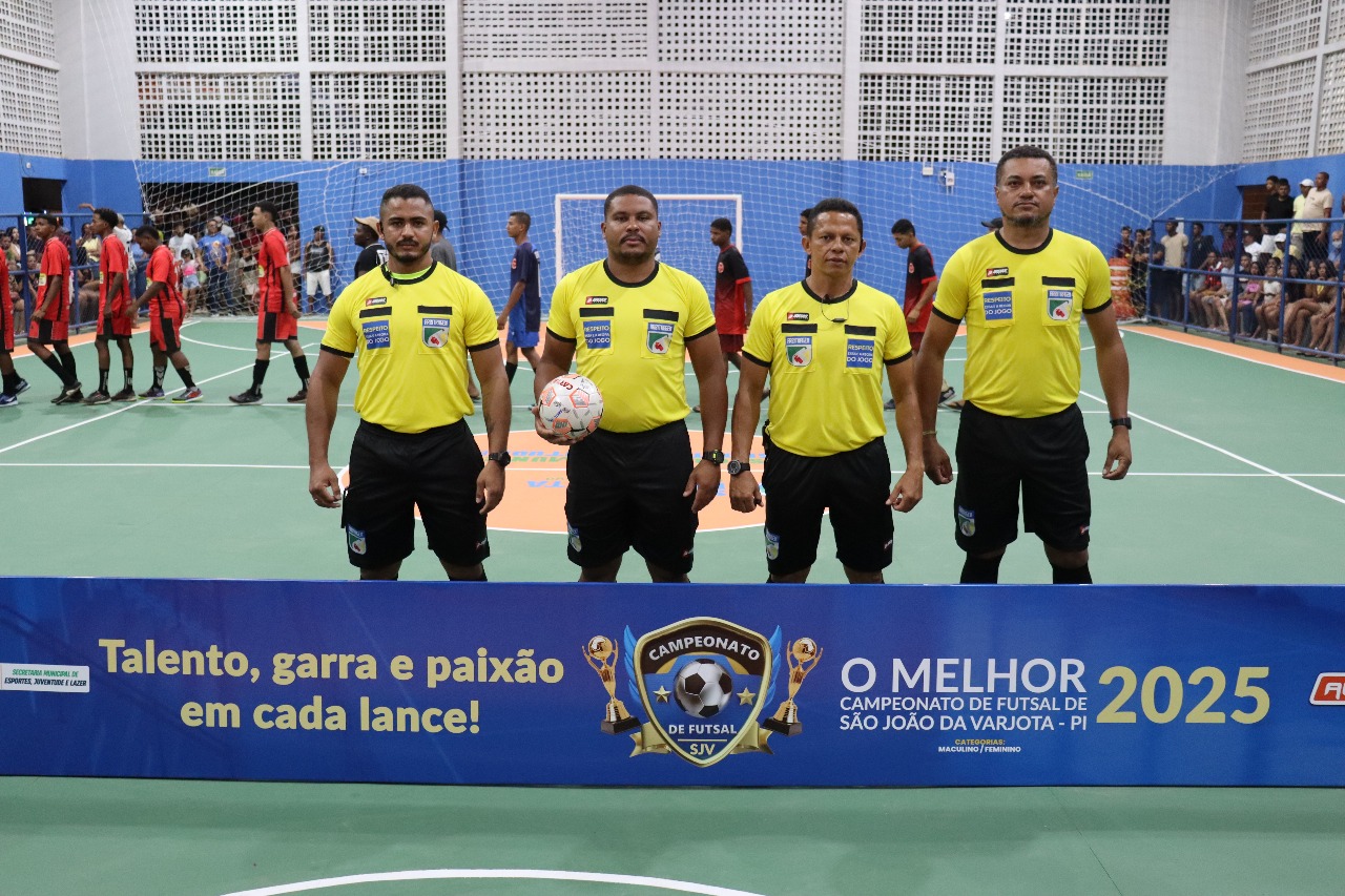 Momento de expectativa, para começar a solenidade dos jogos do I Campeonato de Futsal 2025. Talento! Independente Mimoso. Prefeitura da cidade, através da secretaria de saúde entrega moto para os serviços na área da saúde, na ocasião da abertura do campeonato de futsal Quarteto de arbitragem: Mateus, Jaílson, Paulo e Fia. Time, Estrela Black do Quilombo dos Potes. Musa Ruralzão 2025. O palco. Por José Carlos Silva 11/11 de 2025.